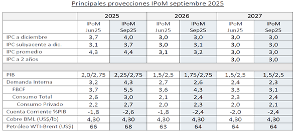 Más detalles sobre la inflación subyacente que ha superado lo esperado, la actividad económica, demanda interna, externa, inversión, y otros datos contenidos en el documento se encuentran disponibles acá: Banco Central de Chile presenta el Informe de Política Monetaria de septiembre de 2025 – Banco Central de Chile